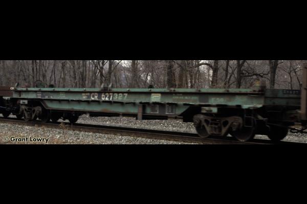 CR 627293 is seen on 33A at Wormleysburg PA on 4/7/12. Car is ex PC 752293 and note the PC green on the draft gear on the end of the car.