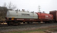 CR 628216 is seen in the consist of NS 14G at Wyomissing, PA on 4/6/19. Car was built 11-77 by Thrall.