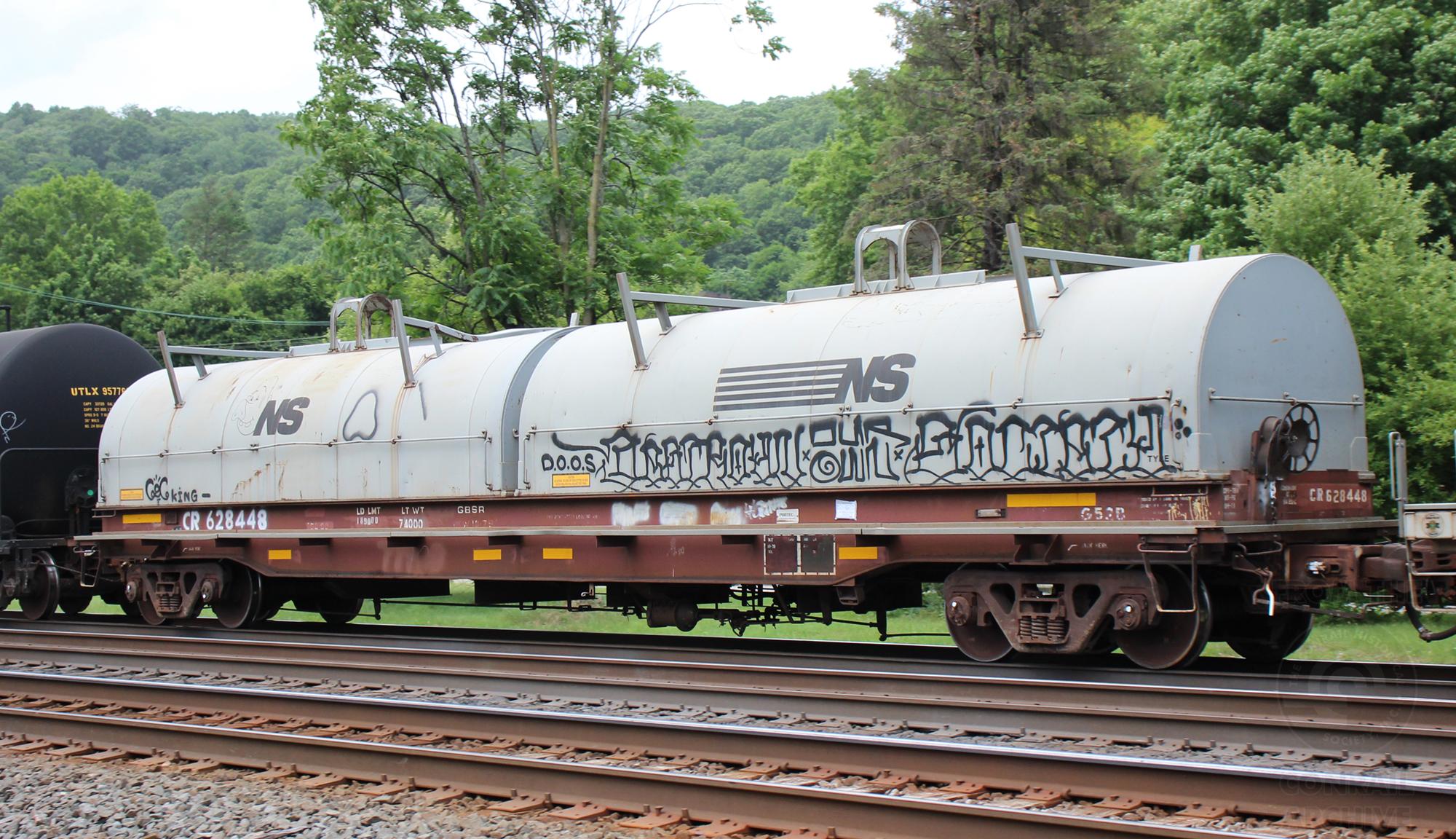 CR 628448 is seen in the consist of NS C28 at Leetsdale, PA on 6/16/22. Car was built 10-79 by Portec as part of Job 1920.