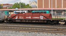 Previous Next CR 631361 is seen in NS 17G at Altoona PA on 6/28/13. Car was built 10-93 by HCS. Photo By Chris Carangi Equipment Type Class G52U Conrail Number 631361 Post Conrail Owner Norfolk Southern Post Conrail Number NS 631361 Year 2013 Original Date 6/28/13 Collection CRHS Conrail Photo Archive Contributions