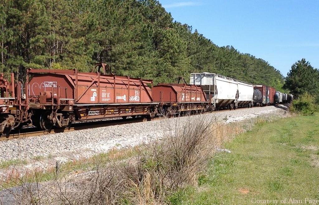 Previous Next CSX CW40-8 7874 and CP SD30C-ECO 5012 lead a mixed freight, including G52U class coil car 631421, through Peachtree City, GA in April, 2014. Instead of CR 631421, the lettering appears changed to NYC 631421. Photo By Alan Page Equipment Type Class G52U Post Conrail Owner CSX Post Conrail Number CSX 631421 Year 2014 Original Date 4/21/14 Collection CRHS Conrail Photo Archive Contributions