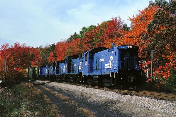 CR 9421 Leads Mixed Freight at Zehners, 10/83