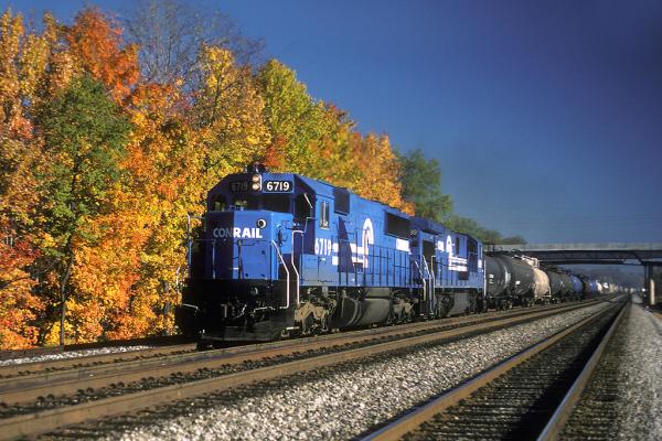 Previous Next Photo By Chris Carangi Former CSX 8499/CR 6701 is seen in fresh paint on D021 at Newark DE on 10/9/08. CSX has derated the unit to 3,000 HP and reclassed it as a SD50-2. Location Details CSX Philadelphia Sub Equipment Type EMD SD50 Conrail Number 6701 Post Conrail Owner CSX Post Conrail Number CSX 8499 2474 Year 2008 Original Date 10/9/08 Collection CRHS Conrail Photo Archive Contributions