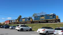 Former CR 8121 is seen leading CSX Q410-02 at Newark, DE on 11/4/16.