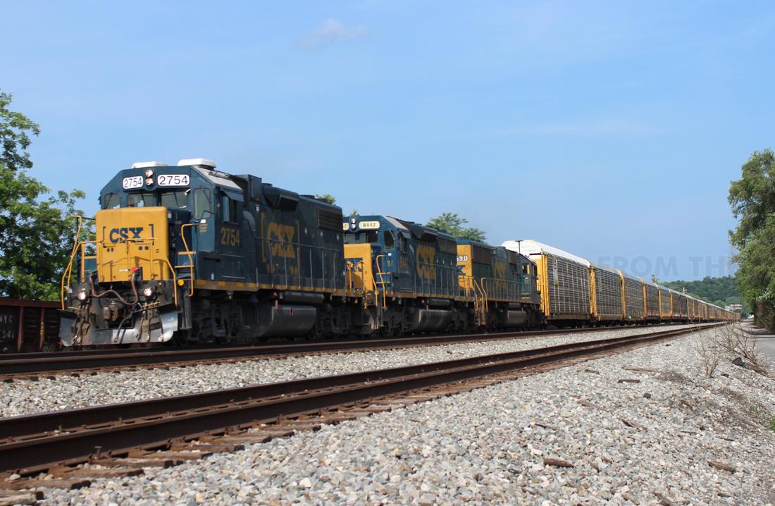 Former CR 8145 is seen leading two more CSX standard cab EMDs on CSX Q261-12 at Green Spring, WV.