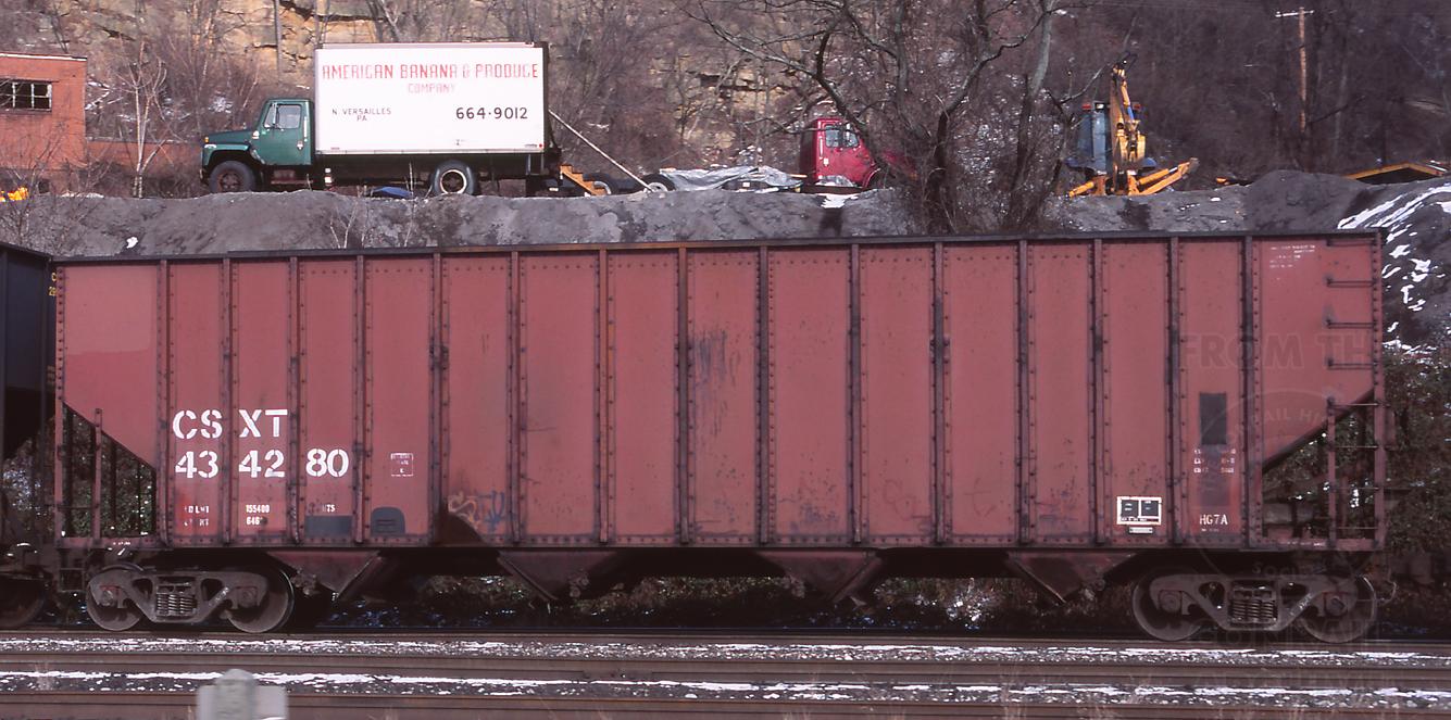 Previous Next Car is ex CR 470021/IC 83550 and was built 1-69. Photo By Jeff Weaver Equipment Type Class HG7A Conrail Number 470021 Post Conrail Owner CSX Post Conrail Number CSX 434280 Year 2007 Original Date 1/31/07 Collection CRHS Conrail Photo Archive Contributions