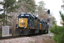 Previous Next Photo By Alan Page Passing by the newly installed signals, CSX GP38-2 2505 works with GP40-2 4435 at Fairburn, GA on December 2, 2015. Equipment Type EMD GP40-2 Conrail Number 3361 Post Conrail Owner CSX Post Conrail Number CSX 4435 Year 2015 Original Date 12/2/15 Collection CRHS Conrail Photo Archive Contributions