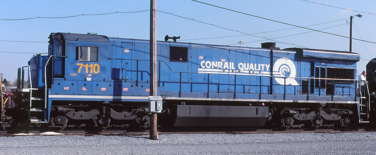 Previous Next C30-7A former CR 6581 is at Cumberland, MD on 11/6/99. Photo By Jeff Weaver Equipment Type GE C30-7A Conrail Number 6581 Post Conrail Owner CSX Post Conrail Number CSX 7110 Year 1999 Original Date 11/6/99 Collection CRHS Conrail Photo Archive Contributions
