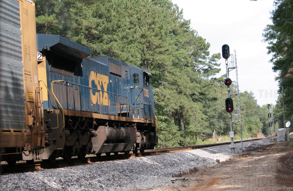 CSXT C40-8W 7302 (CR 6054) hustles a line of autoracks NB through Peachtree City, GA on October 2, 2016.