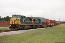 CSXT C40-8W's 7321 (CR 6104) and 7382 (CR 6249) approach the Wickersham Drive crossing in College Park, GA on October 5, 2015.