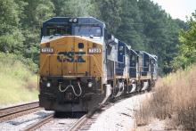 CSXT C40-8W 7329 (CR 6126) leads C40-8W 7882, GP40-2 6105, B40-8 5940, and GP38-2 2553 through Union City, Ga on August 11, 2015.