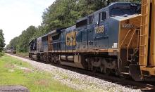 Previous Next CSXT SD50-2 8570 (ex-C&O) leads C40-8W 7358 (ex-CR 6193) and a line of autoracks southbound past AC44CW 515 holding with a military material special at Peachtree City, GA. Photo By Alan Page Equipment Type GE C40-8W Conrail Number 6193 Post Conrail Owner CSX Post Conrail Number CSX 7358 Year 2015 Original Date 6/25/15 Collection CRHS Conrail Photo Archive Contributions