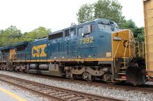Previous Next Former CR 6275/CR 749 is seen on CSX Q217-30 at Saint Denis, MD on 8/30/14. Photo By Chris Carangi Equipment Type GE C40-8W Post Conrail Owner CSX Post Conrail Number CSX 7392 Year 2014 Original Date 8/30/14 Collection CRHS Conrail Photo Archive Contributions
