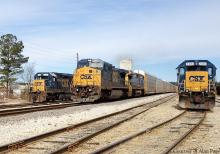 Previous Next CSX C40-8W 7924 (former LMS 706) leads sister unit 7855 and a load of autoracks through the Fairburn, GA sorting yard past CSX SD40-2 8367 and Road Slug 2303. Photo By Alan Page Location Details Fairburn sorting yard Equipment Type GE C40-8W Conrail Number 706 Post Conrail Owner CSX Post Conrail Number CSX 7924 Year 2014 Original Date 2/22/14 Collection CRHS Conrail Photo Archive Contributions