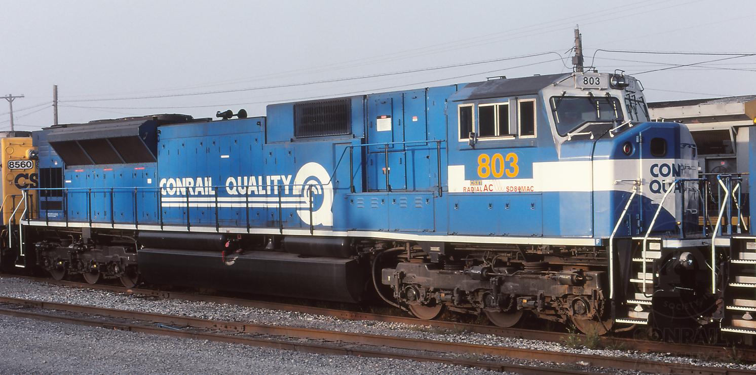 Former CR 4108 is on a loaded coal train at New Castle, PA on 8/24/99. Unit would later be renumbered to CSXT 4593.