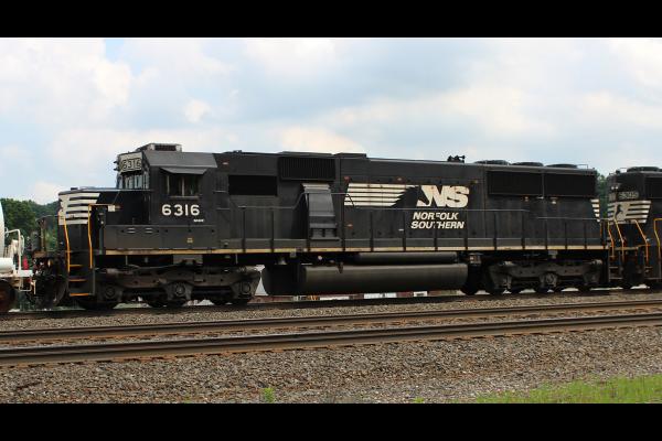 CSX 8666 was spotted in Apex, NC on 10/14/11. The unit is ex Conrail 6756 and has remarkably retained its red marker lights on the front and rear. Unit is an EMD SD50. The locomotive was sighted in YN3 paint, however Conrail paint is bleeding through on the side handrails.