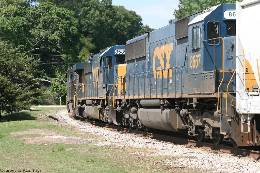 CSXT SD50-2 8667 (CR SD50 6757) follows SD50-2 8535 and ES40DC 5344 at College Street in Union City, GA on May 6, 2015.