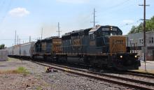 A pair of former CR SD40-2's, CSXT 8828 (CR 6431) & CSXT 8851 (CR 6492), are seen leading CSAO train CA-11 at Westville, NJ on 6/4/24.