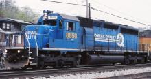 Previous Next Former CR 6490 is westbound at Aliquippa, PA on 4/19/00. Photo By Jeff Weaver Equipment Type EMD SD40-2 Conrail Number 6490 Post Conrail Owner CSX Post Conrail Number CSX 8850 Year 2000 Original Date 4/19/00 Collection CRHS Conrail Photo Archive Contributions