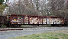 CSXT 915162 is seen in the consist of CSX Q410-02 at Perryville, MD on 4/4/20. Car is ex NYC 588377/CR 588377/CR 576056/PC 576056 and was built 2-68 as a PC G43A class gon. Photo by Chris Carangi.