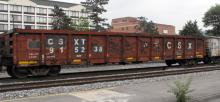 CSXT 915238 is seen in CSX Q394-26 at Cumberland MD on 6/27/13. Car is ex NYC 588404/CR 588404/CR 795499/PC 795499.