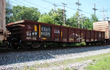CSXT 915375 is seen in the consist of CSX M421-22 at Newark, DE on 7/23/23. Car is ex NYC 577642/CR 577642/PC 577642 and was built 5-68.