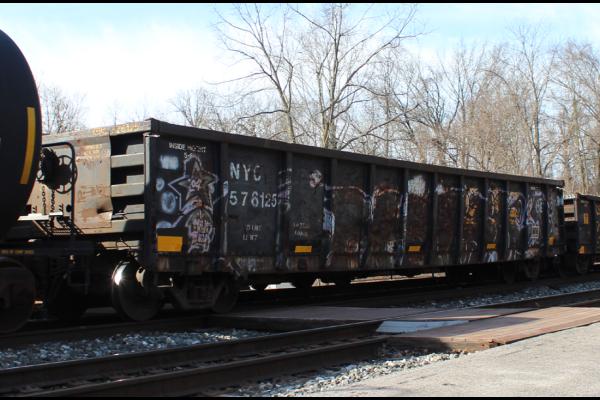 CSXT 915923 is seen in the consist of CSX M560-23 at Deshler, OH on 6/23/23. Car is ex NYC 577143/PC 577143/PRR 387719 and was built 11-66 as a PRR G43 class gon. It was rebodied by CSX RA 2-01.