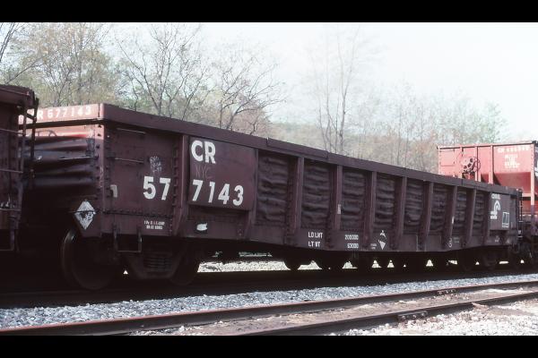 CSXT 915923 is seen in the consist of CSX M560-23 at Deshler, OH on 6/23/23. Car is ex NYC 577143/PC 577143/PRR 387719 and was built 11-66 as a PRR G43 class gon. It was rebodied by CSX RA 2-01.