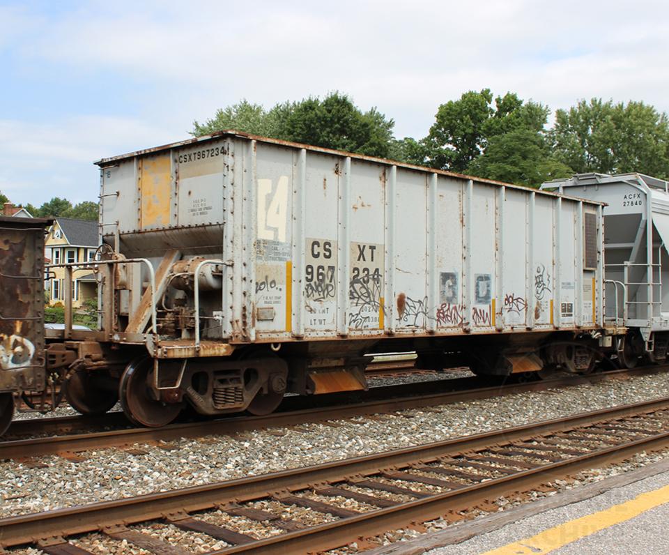 CSXT 967234 is seen in the consist of CSX Q409-28 at Saint Denis, MD on 8/30/14. Car is ex CR 53239 and was built 2-87.