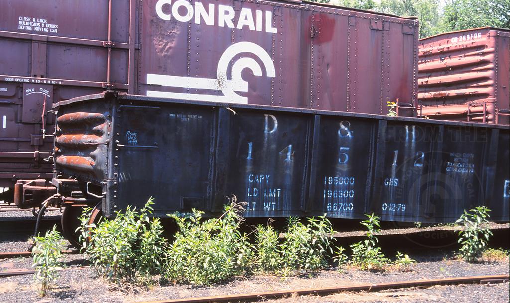 Previous Next Photo By Jeff Weaver A view of the left end of D&H 14512 which is in storage at Hollidaysburg PA on 6/19/02. Equipment Type Class GL52A Year 2002 Original Date 6/19/02 Collection CRHS Conrail Photo Archive Contributions