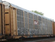Previous Next Flatcar ETTX 701160 is seen with CR class ML3N rack #7383. Rack was rebuilt 9-98. Photo By Donnie Lee Equipment Type ETTX Tri-Levels Post Conrail Owner Norfolk Southern Year 2011 Original Date 9/3/11 Collection CRHS Conrail Photo Archive Contributions