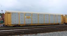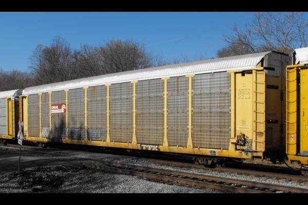 ETTX 701237 is seen in the consist of CSX Q216-10 at Cumberland, MD on 6/12/14. Rack number is CR 7149, built 3-89, rebuilt and repainted CSX in 6-11.