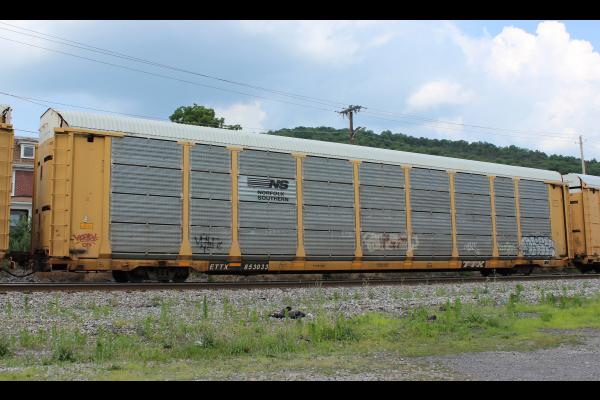 ETTX 701237 is seen in the consist of CSX Q295-10 at Elsmere, DE on 8/10/16. Rack number is CR 7149, built 3-89 and was rebuilt and repainted CSX in 6-11.