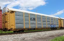 ETTX 710278 is seen in the consist of CSX Q249-13 at Cumberland, MD on 6/14/14. Rack was built as CR 7245 in 4-89, a CR ML3N class rack and was rebuilt, repainted and renumbered to NS 33916 in 9-12. Rack is now classed FT640 by NS.
