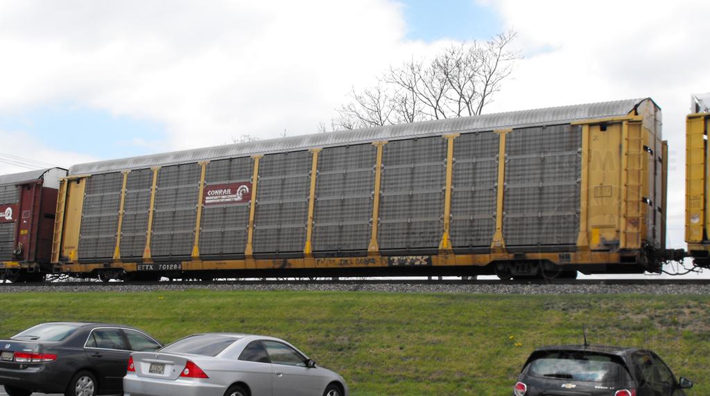 ETTX 701284 is seen on CSX Q216-11 at Newark DE on 4/13/13. Rack number is CR 7242 and is now owned by NS.