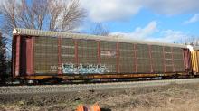 ETTX 701305 is seen in the consist of CSX Q216-14 at Newark, DE on 3/16/18. Rack number is CR 7349, built 4-89, rebuilt 10-97 and is now owned by NS.