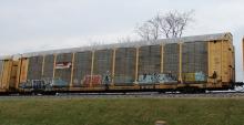 ETTX 701321 is seen in the consist of CSX Q216-01 at Newark, DE on 4/3/15. Rack number is CR 7293, built 4-89, rebuilt 3-98 and is now owned by CSX.