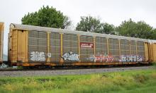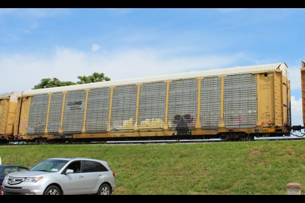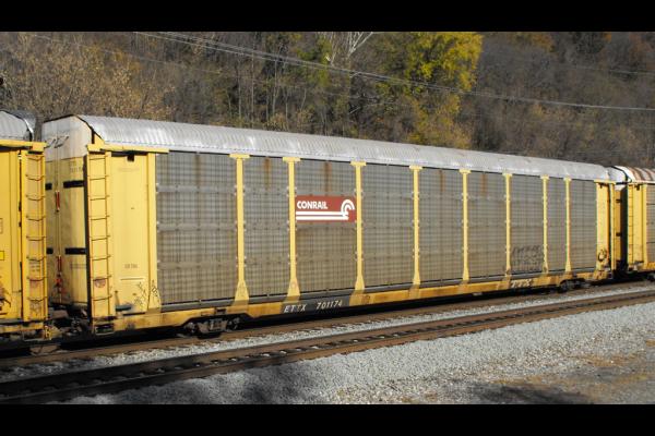 ETTX 701369 is seen in the consist of CSX Q276-27 at Newark, DE on 5/29/18. Rack number is CR 7334, built 4-89, rebuilt 3-98, and is now owned by CSX.