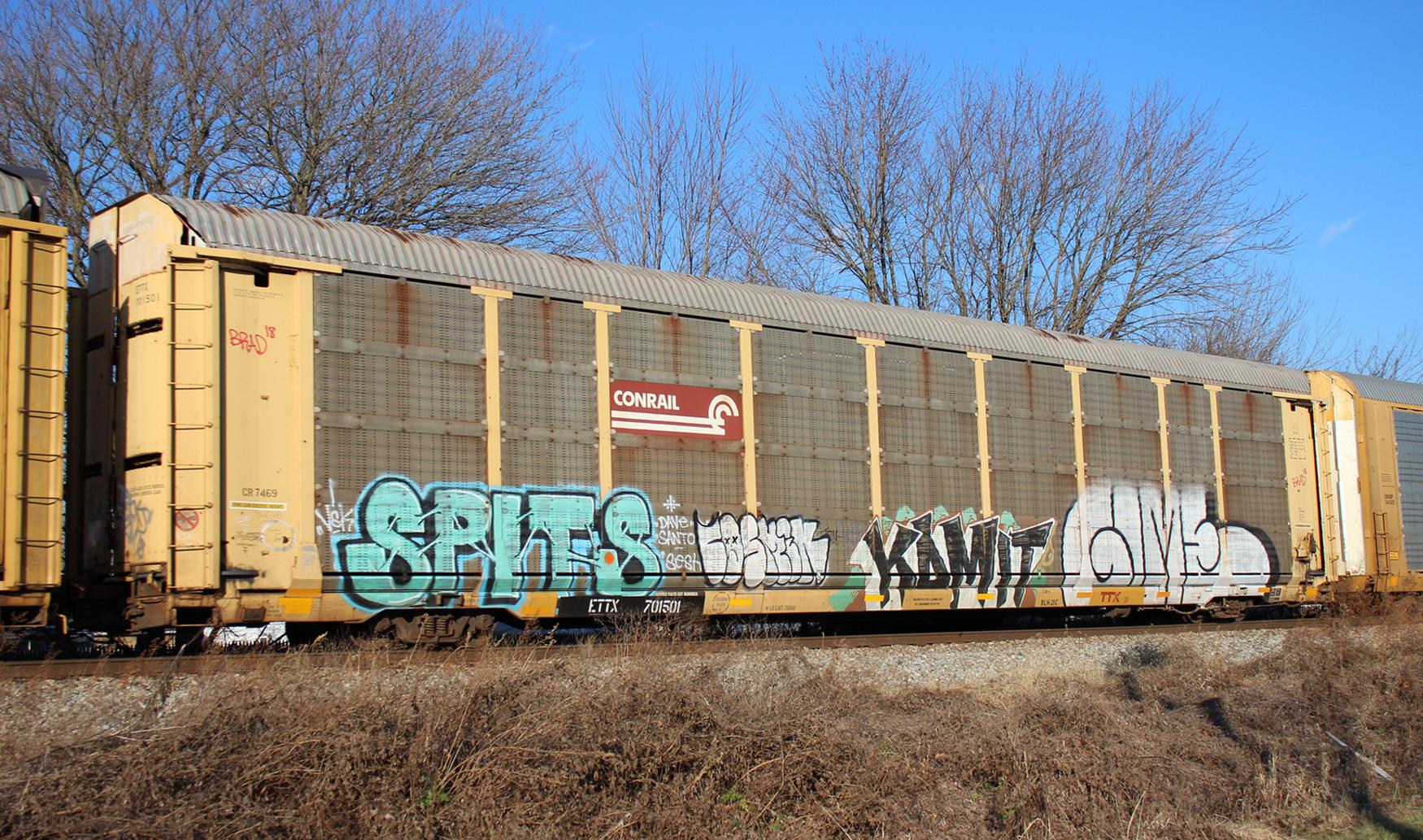 ETTX 701501 is seen in the consist of CSX Q216-30 at Newark, DE on 1/1/20. Rack number is CR 7469, built 5-89, rebuilt 4-98 and is now owned by NS.