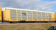 ETTX 800667 is seen in the consist of CSX S296-26 at Newark, DE on 12/28/16. Rack was built as a unknown CR ML3K class rack in 6-88 and was rebuilt, repainted and renumbered to NS 33519 in 6-08. Rack is now classed FT638 by NS.