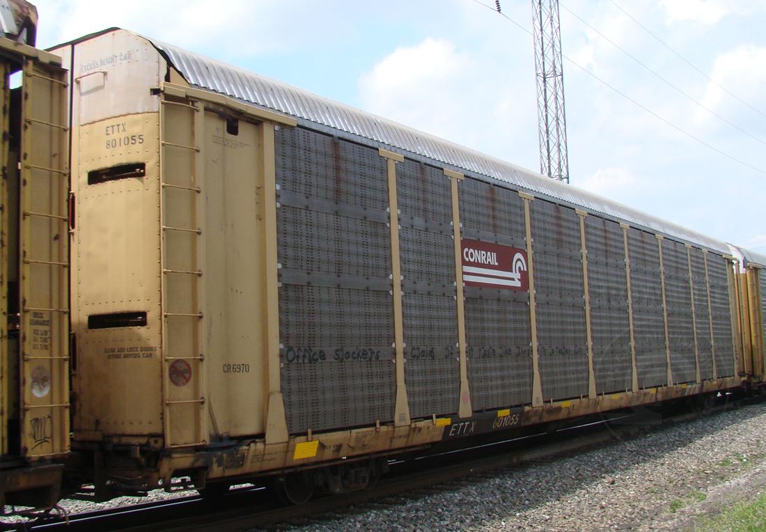 Previous Next Photo By Donald Grant Rack number is CR 6970. Location Details Elsmere Jct. Equipment Type ETTX Tri-Levels Conrail Number 6970 Post Conrail Owner Norfolk Southern Post Conrail Number NS 6970 Year 2010 Original Date 6/1/10 Collection CRHS Conrail Photo Archive Contributions