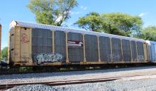 ETTX 801272 is seen in the consist of CSX Q216-07 at Newark, DE on 4/9/17. Rack number is CR 8576, built 12-89, built 3-98 and is now owned by CSX.
