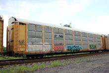 ETTX 802263 is seen in the consist of NS 35A at Marysville, PA on 8/17/19. Rack was built as an unknown CR ML3K class rack in 7-88. Then was rebuilt, repainted and renumbered to NS 33938 in 7-13. It is now classed FT639 by NS.
