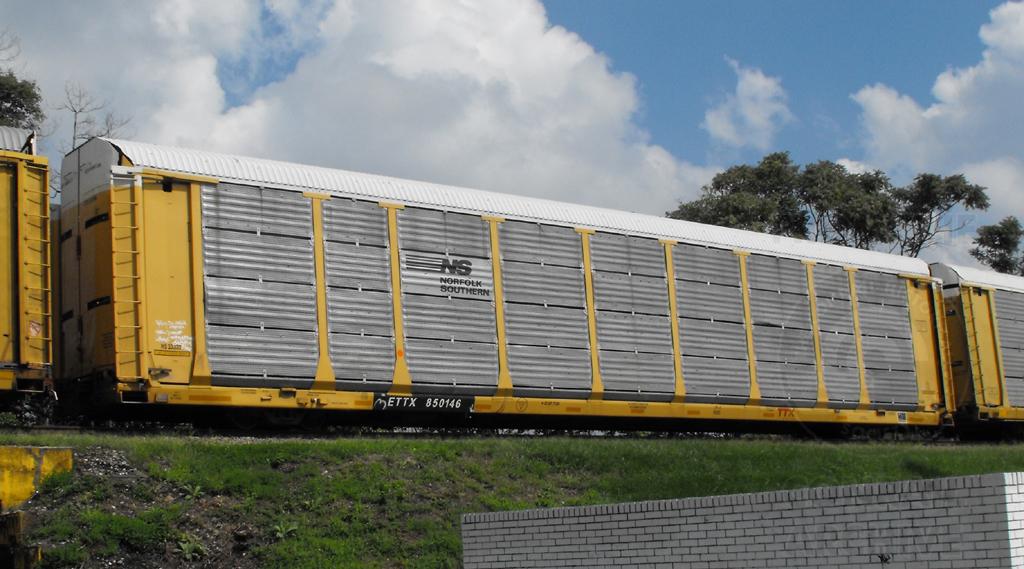 ETTX 850146 is seen in NS paint on Q217-10 at Newark DE on 9/10/11. Rack is ex CR 8922, now NS 33332.