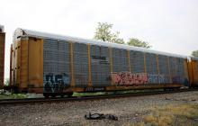 ETTX 850215 is seen in the consist of CSX Q217-12 at St. Denis, MD on 5/12/17. Rack was built as a unknown CR ML3K class rack in 7-88 then was rebuit, repainted, and renumbered to NS 33981 in 8-11. Rack is now classed FT639 by NS.