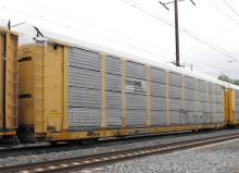 ETTX 850463 is seen in NS paint on NS 36A at Newark DE on 5/23/13. Rack was built as CR 8943, a ML3R class rack in 4-90 and repainted and renumbered to NS 33342 in 10-07. Rack is now classed FT643.
