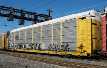ETTX 852934 is seen in NS paint on H5R at Newark DE on 10/5/2011. Rack was built as CR unknown in 4-89 and rebuilt and renumbered to NS 33309 in 4-07.