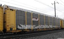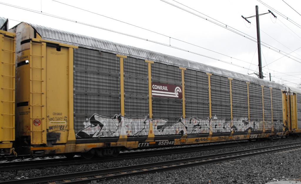 ETTX 852949 is seen on 30A at Newark DE on 1/17/12. Rack number is CR 6160, built 6-89, rebuilt and repainted yellow 3-98 and is now owned by NS.