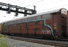 ETTX 853240 is seen in the consist of NS 36A at Newark, DE on 8/25/10. Rack number is CR 8934, built 4-90, and is now owned by NS.