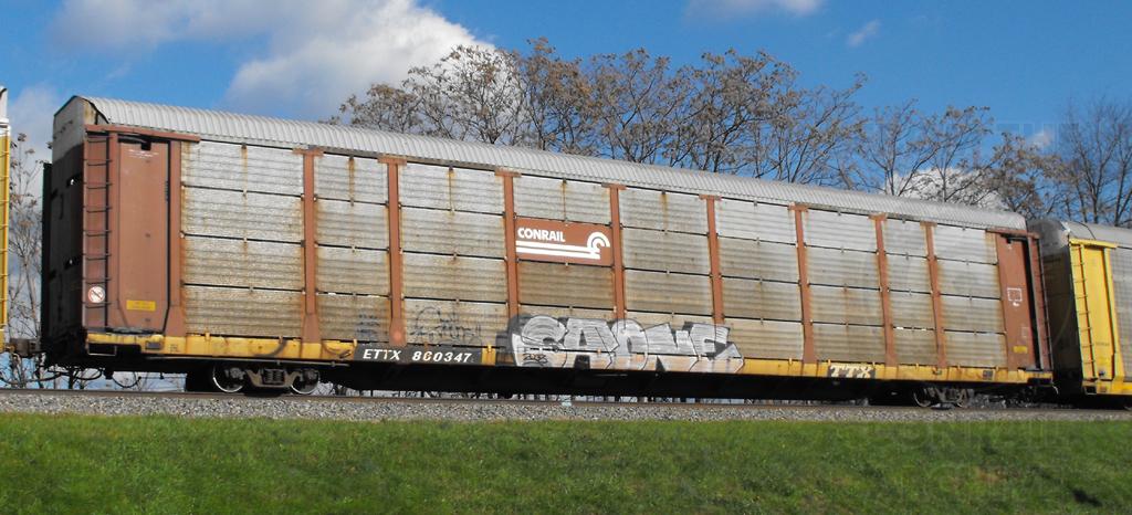 ETTX 860347 is seen on Q217-18 at Newark DE on 11/18/08. Rack number is CR 8718 and is now owned by CSX.